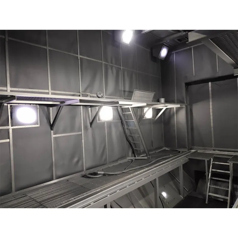 Внешняя часть камеры изготовлена из стальных сэндвич-панелей толщиной 75 мм с цветным покрытием. По сравнению с традиционными дробеструйными камерами, изготовленными из цельных стальных листов, такая конструкция имеет следующие преимущества: эстетичный внешний вид, простота установки, коррозионная стойкость и долговечность, теплоизоляционные свойства и звукопоглощающие характеристики. Сердечник из минеральной ваты внутри сэндвич-панелей обеспечивает огнестойкость.
