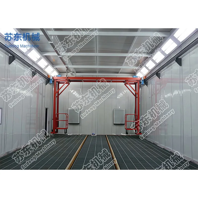 6. Транспортная система использует либо рельсовые тележки, либо подвесные цепные конвейеры в зависимости от типа заготовки.
