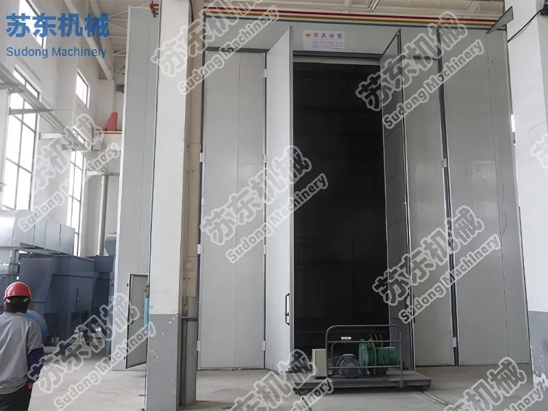 2. Переместите тележку с заготовками в камеру дробеструйной очистки и закройте главную дверь.