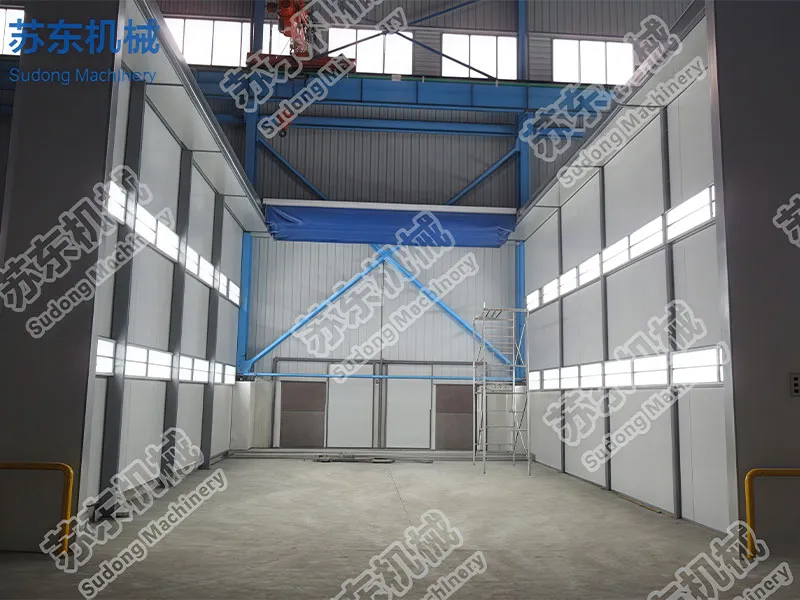 Оборудование состоит из закрытой системы камеры, системы освещения, системы приточной вентиляции, системы очистки и выравнивания давления приточного воздуха, системы вытяжной вентиляции, системы обработки отходов, системы управления, рельсовой платформенной тележки и других компонентов.
