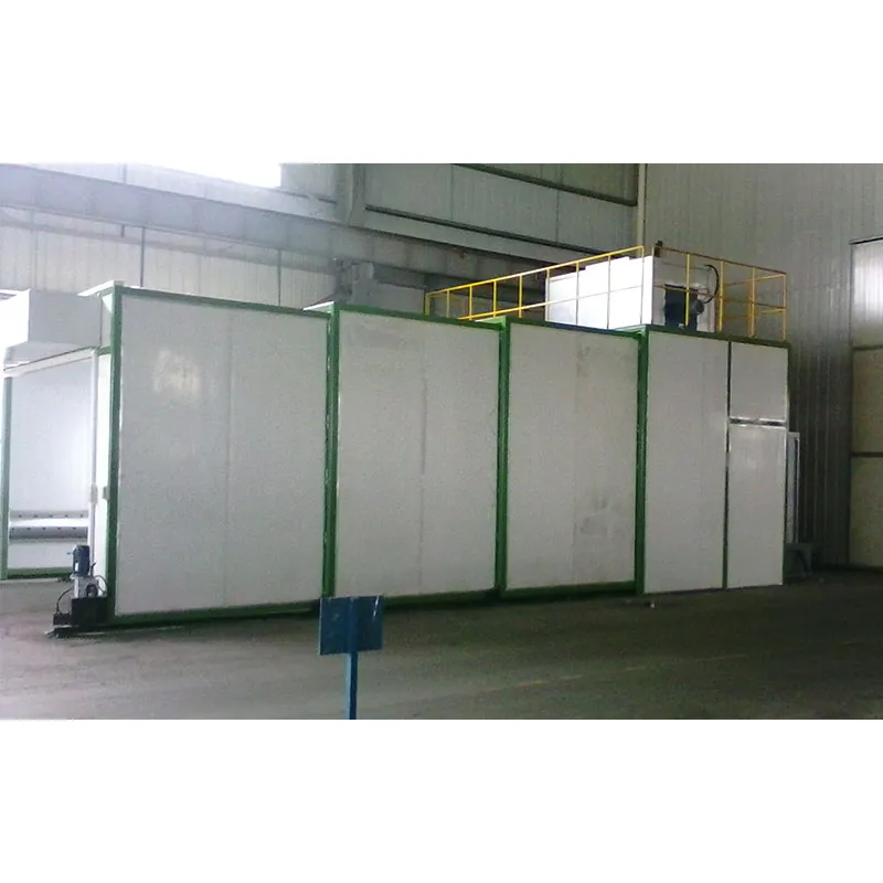 Внешний воздух после фильтрации через фильтр грубой очистки (в зимний период воздух требует подогрева) подается вентилятором к потолку окрасочной камеры. Затем, пройдя вторичную фильтрацию и очистку через потолочный фильтр, воздух поступает внутрь камеры. В камере используется полный нисходящий поток воздуха, который движется вниз с определенной скоростью, что не позволяет частицам лакокрасочного аэрозоля оставаться в воздухе после окраски, а направляет их непосредственно в фильтрующее устройство в нижней выходной части. Таким образом, улавливается избыточный лакокрасочный туман и вредные газы, образующиеся в процессе окраски, а обработанные отработанные газы напрямую выводятся из камеры через выхлопное отверстие. Это гарантирует абсолютно чистый воздух внутри помещения, создавая безопасную и гигиеничную рабочую среду.