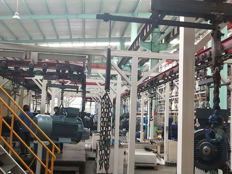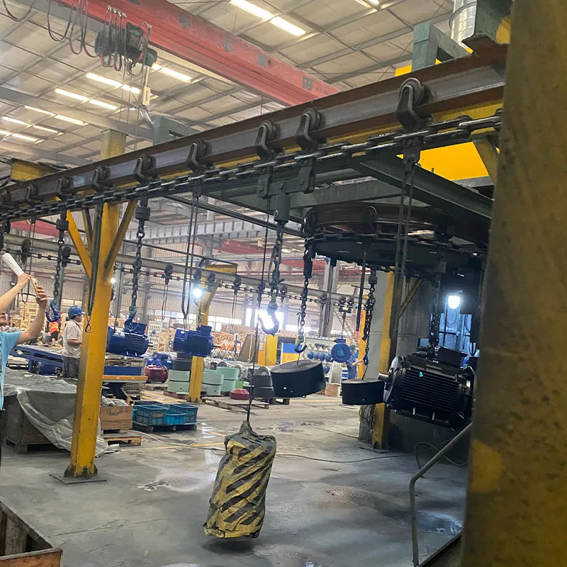 Обычный подвесной конвейер ХТ представляет собой оборудование для непрерывной транспортировки материалов в пространстве. Материалы размещаются в специальных контейнерах или на кронштейнах и перемещаются по заданной траектории. Линия может подниматься, опускаться и поворачивать в пространстве, обеспечивая свободную и гибкую компоновку, и занимает небольшую площадь.